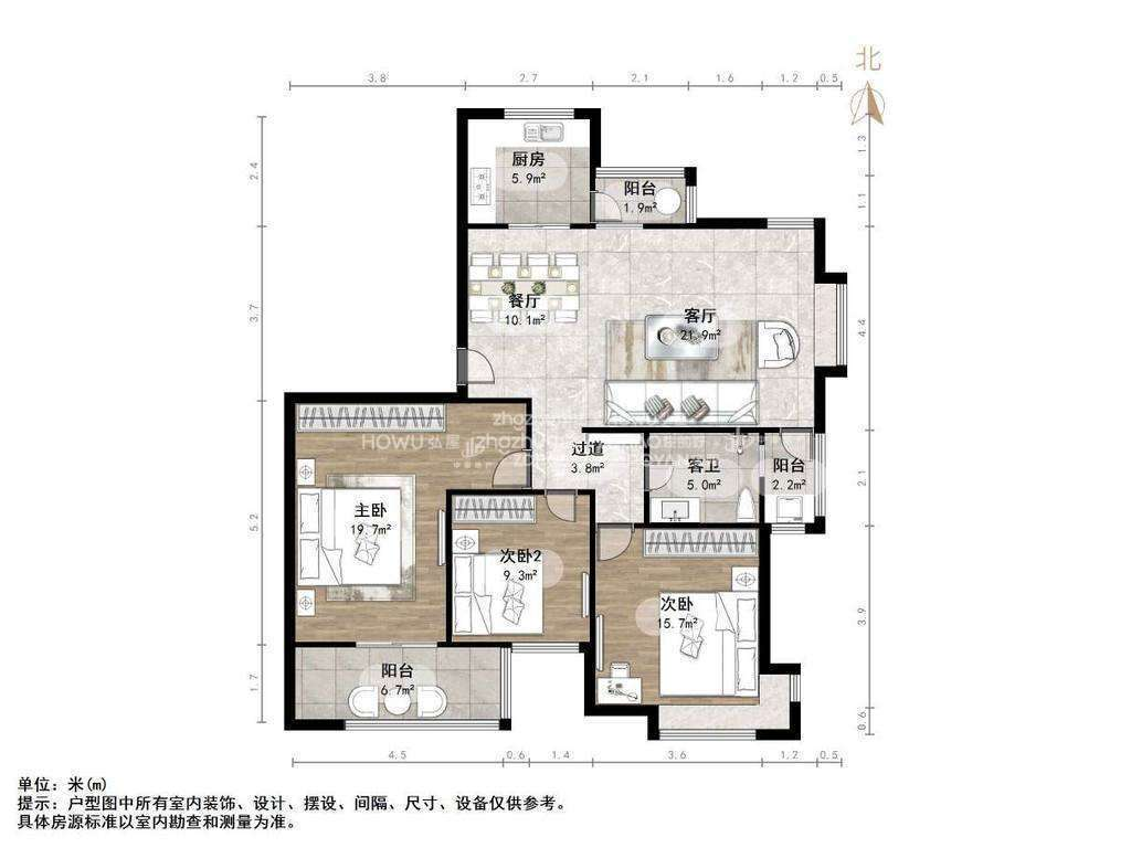 厅室3室2厅1卫1阳台