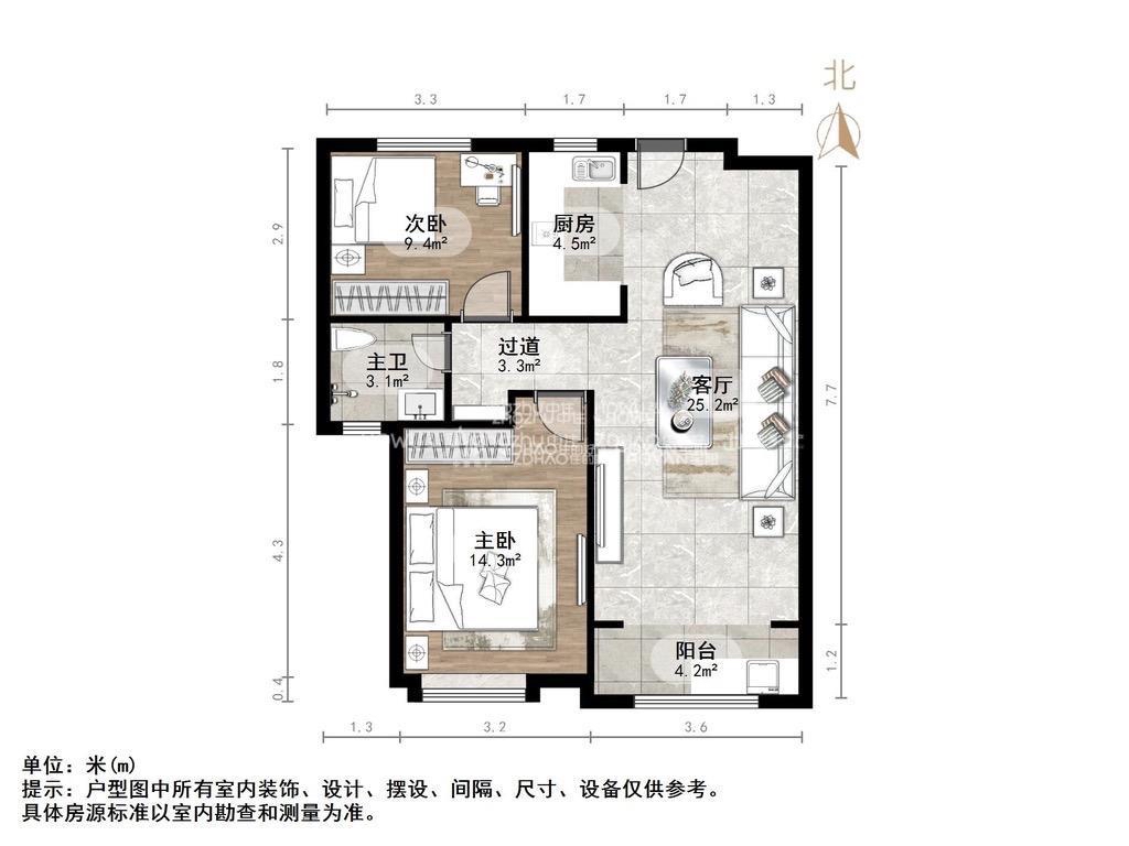 朝向南北 建筑面积92.77㎡
