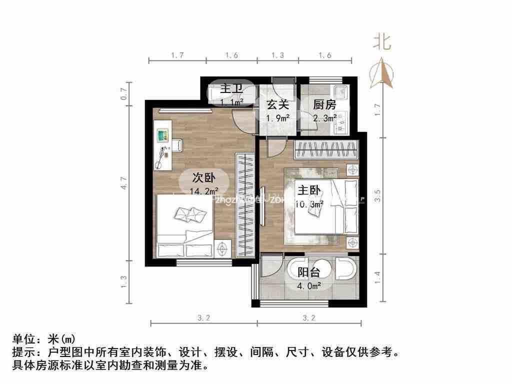 朝向南北 建筑面积45㎡