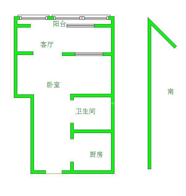 厅室1室1厅1卫1阳台