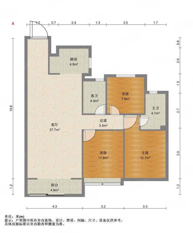 厅室3室2厅2卫2阳台