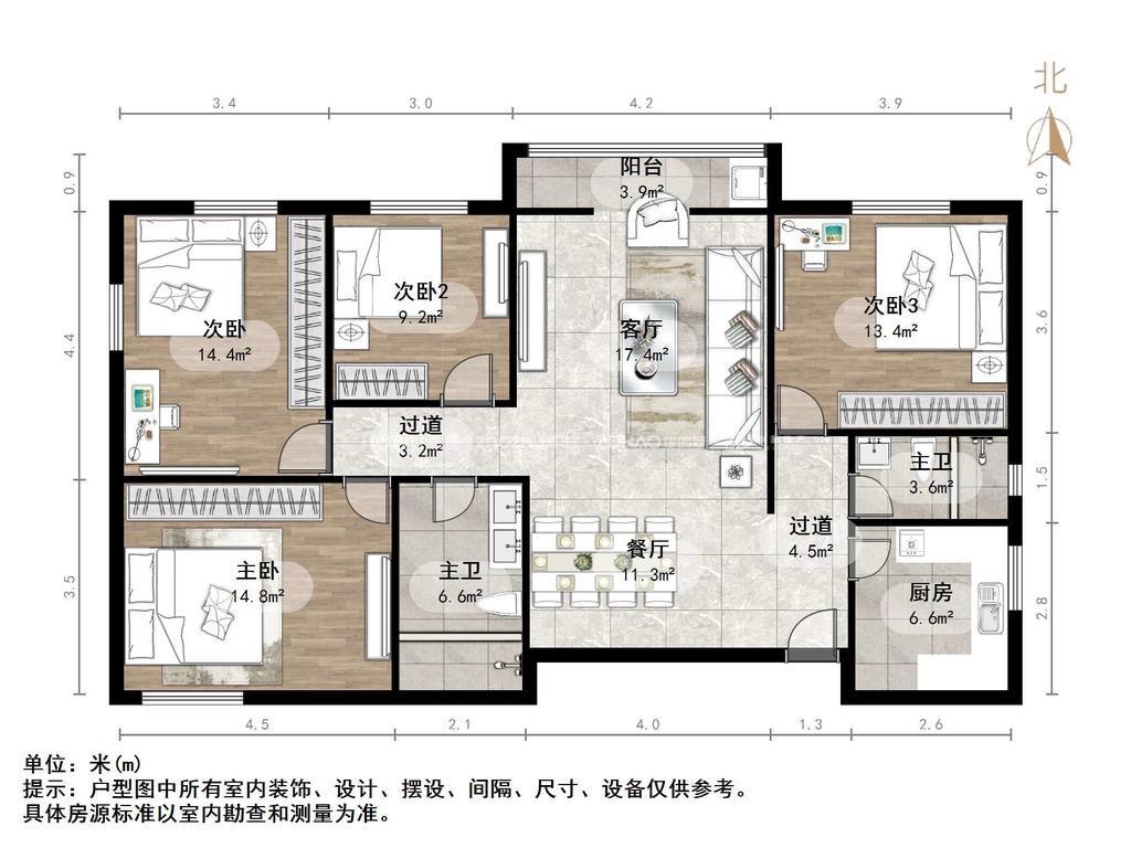 厅室4室2厅2卫1阳台