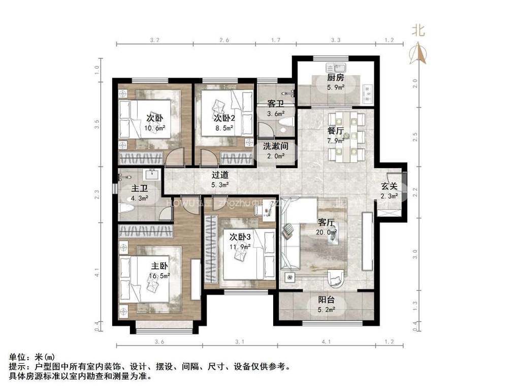 厅室2室2厅3卫2阳台