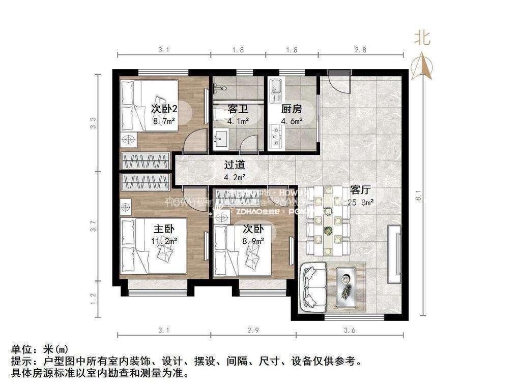 朝向南 建筑面积96.88㎡