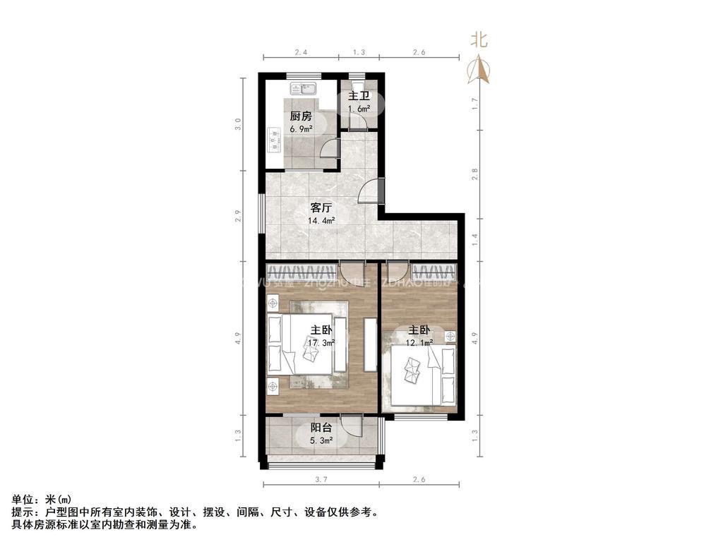 朝向南北 建筑面积61.9㎡