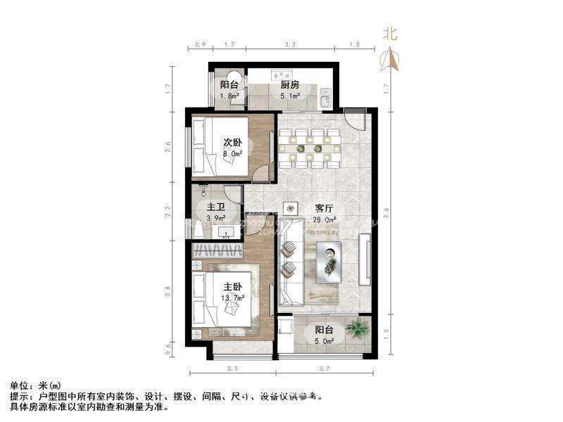 朝向南北 建筑面积97㎡