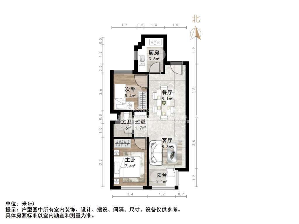 厅室2室2厅1卫1阳台