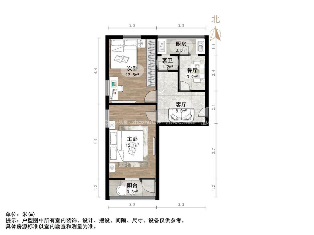 朝向南北 建筑面积60㎡