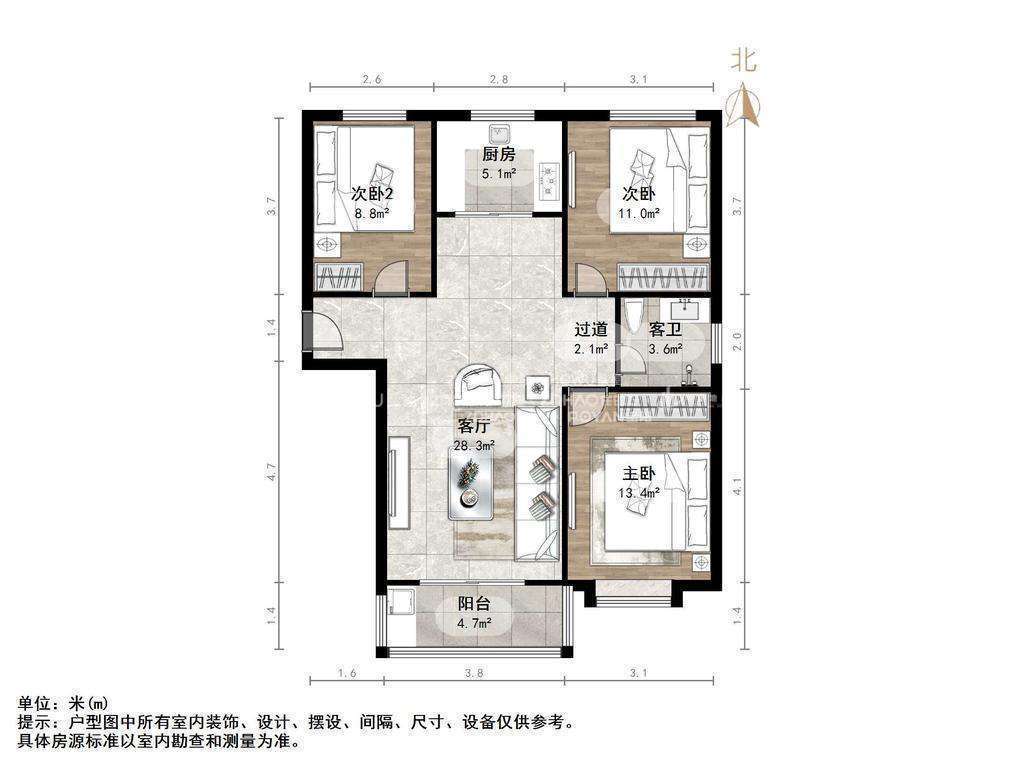 朝向南北 建筑面积106.73㎡