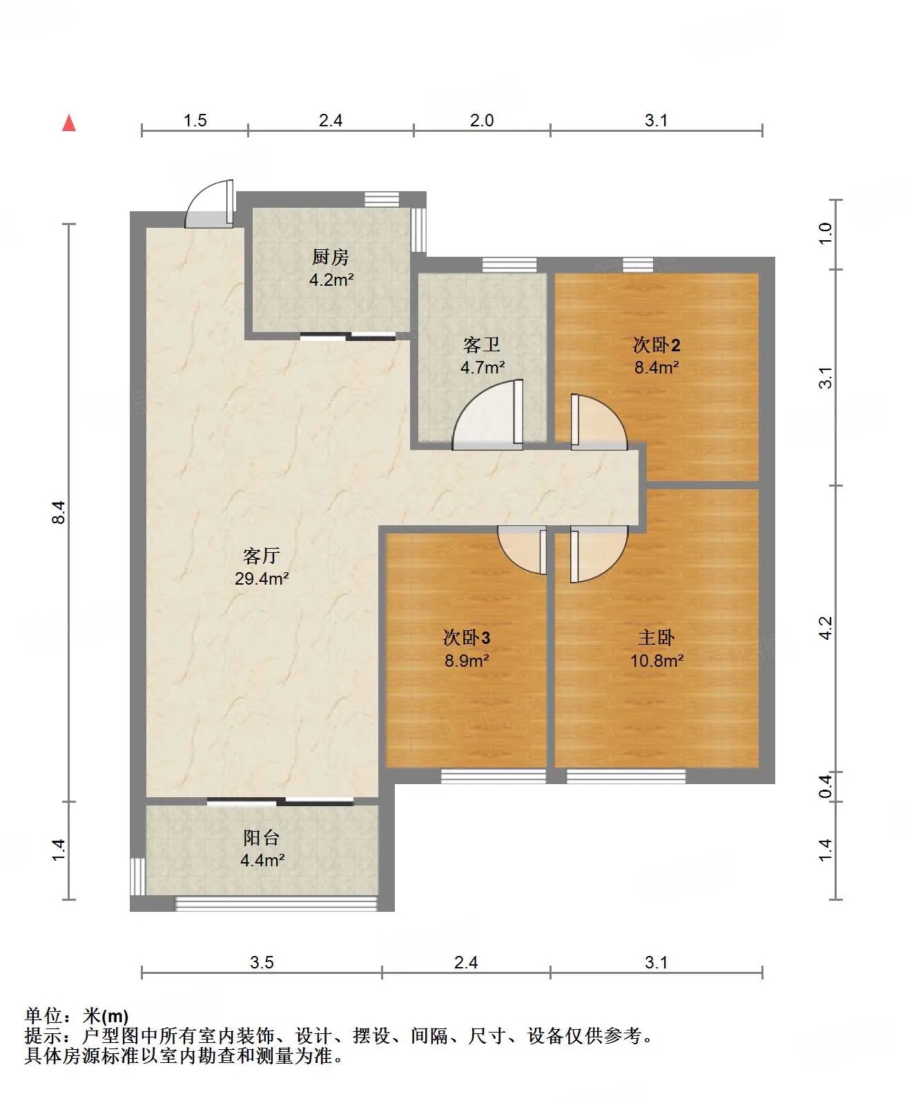 厅室3室2厅1卫1阳台