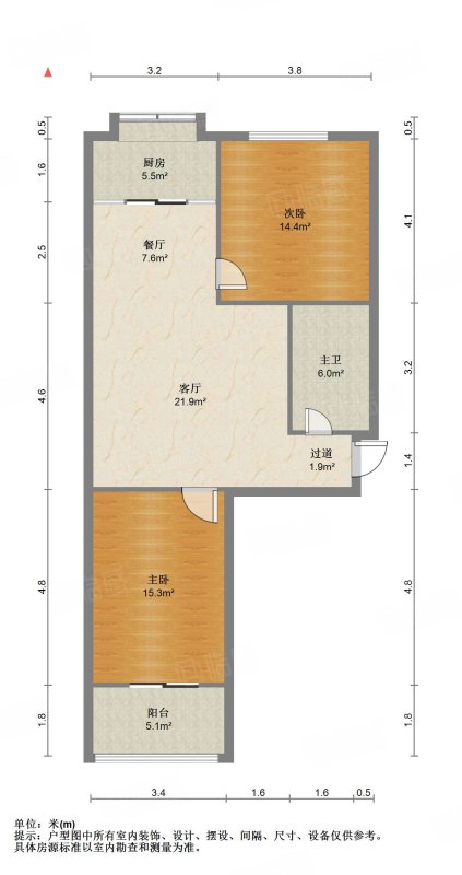 厅室2室1厅1卫1阳台