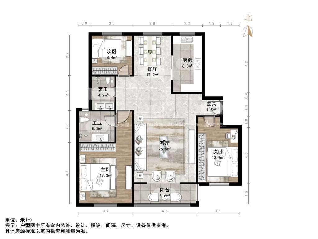厅室3室2厅2卫1阳台