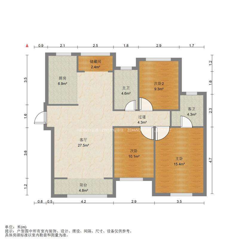 厅室3室2厅2卫1阳台