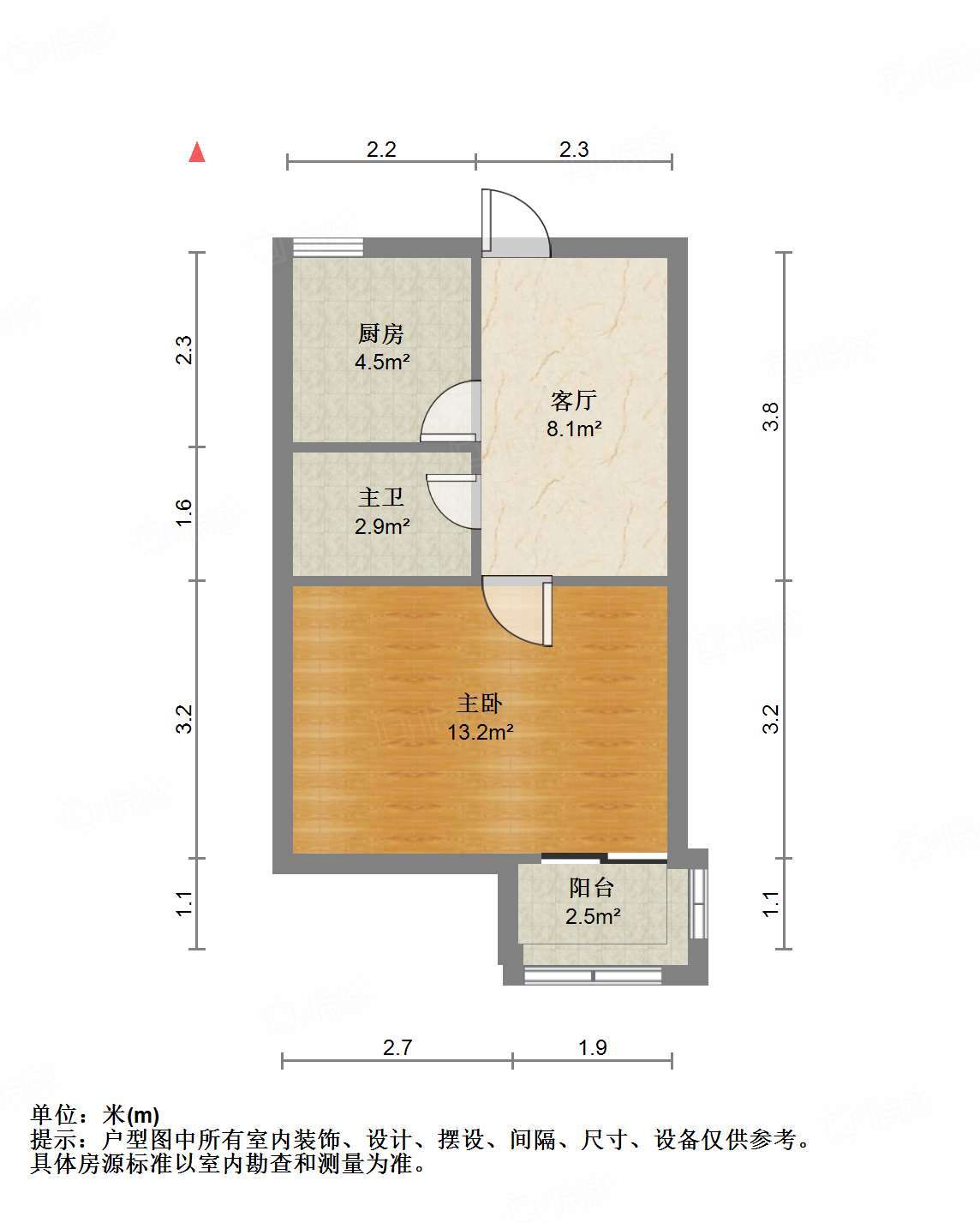 厅室1室1厅1卫1阳台