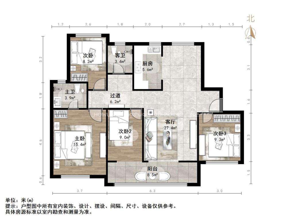 厅室4室2厅2卫1阳台