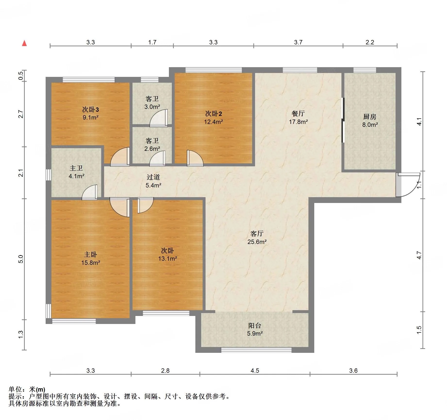 厅室4室2厅2卫1阳台