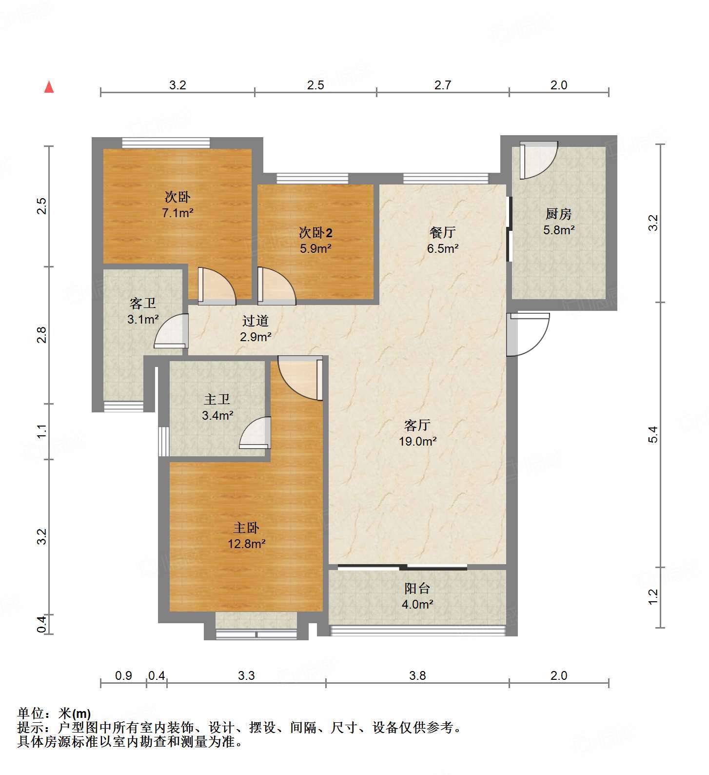 厅室3室2厅2卫1阳台