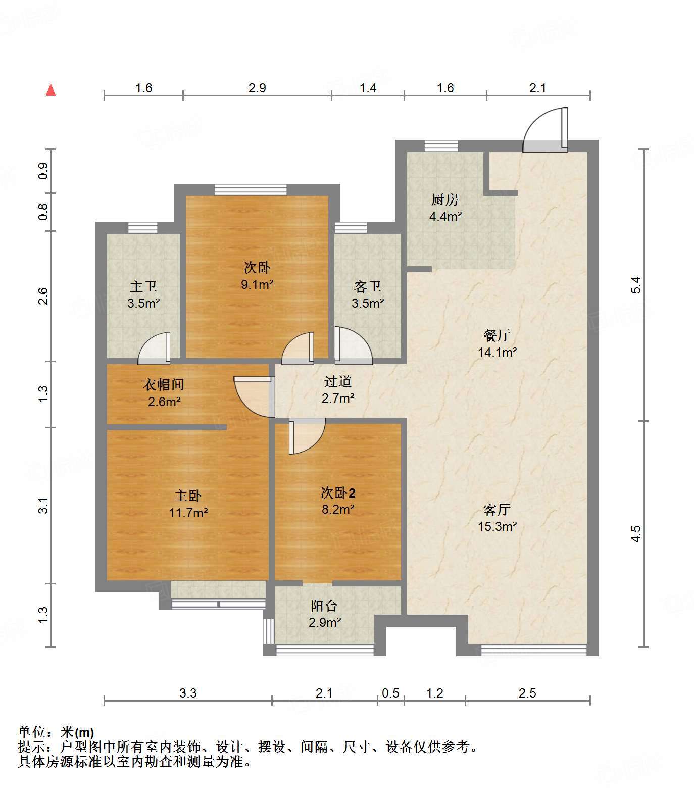 厅室3室2厅2卫1阳台