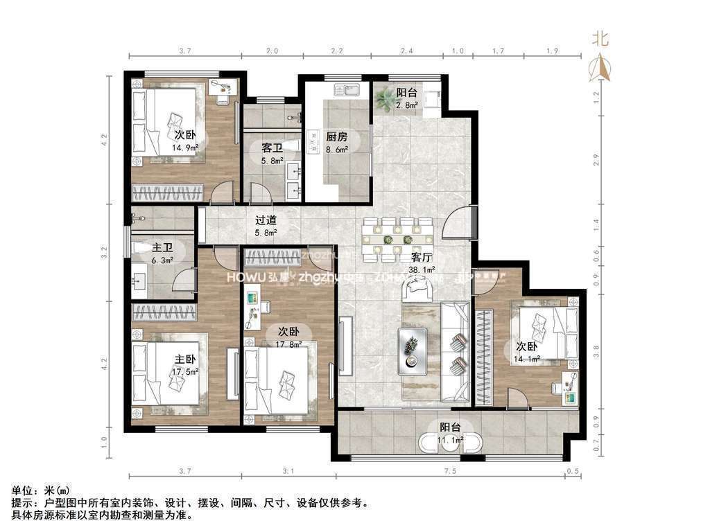 厅室4室2厅2卫2阳台