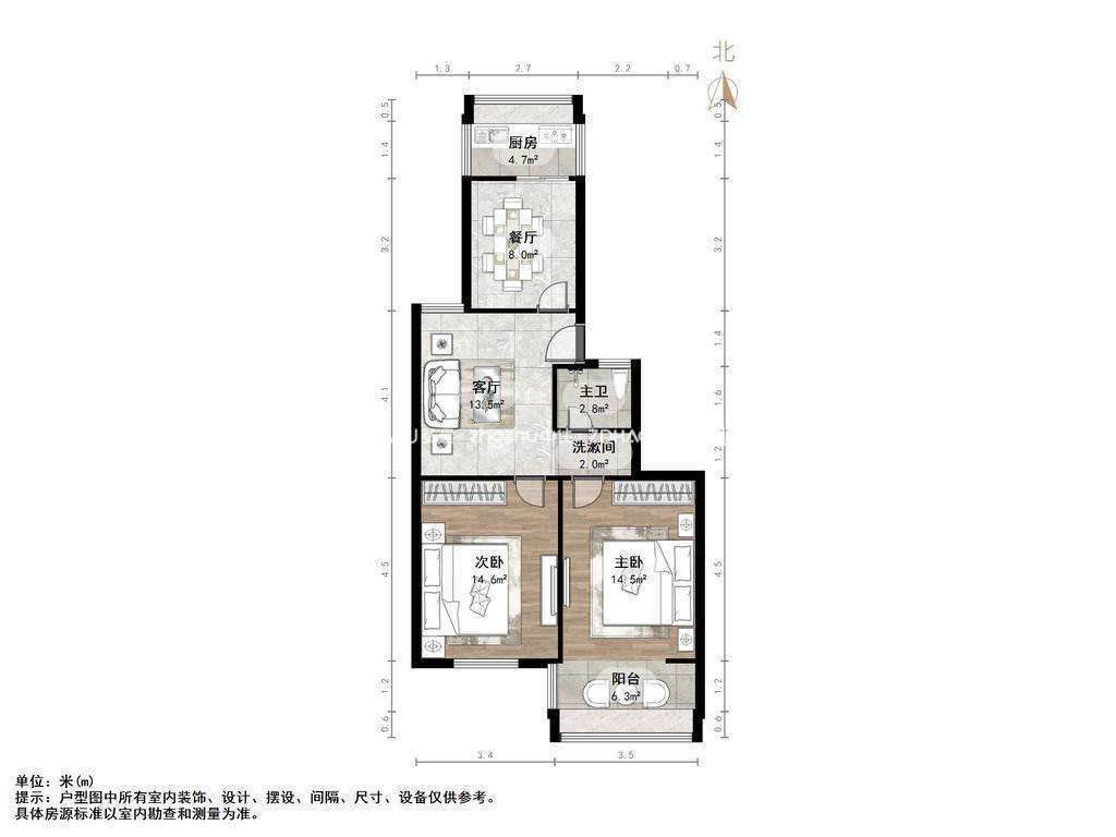 朝向南北 建筑面积75㎡