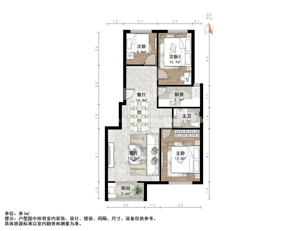 厅室3室2厅1卫1阳台