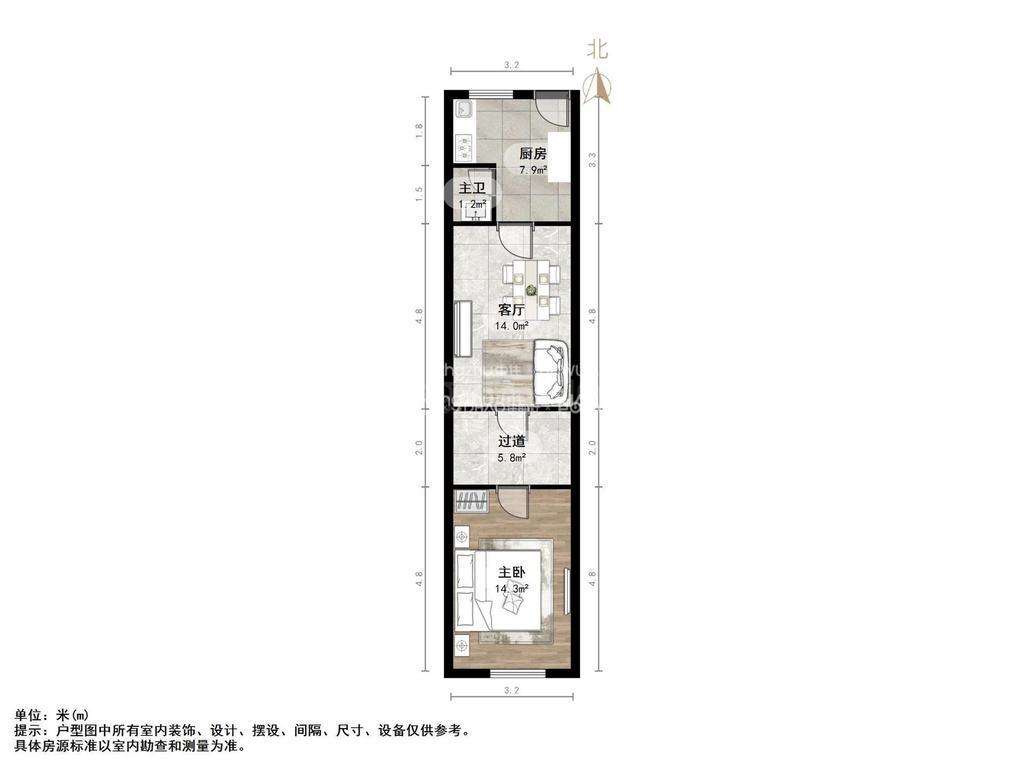 朝向南北 建筑面积65㎡