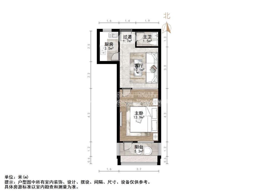 厅室1室1厅1卫1阳台