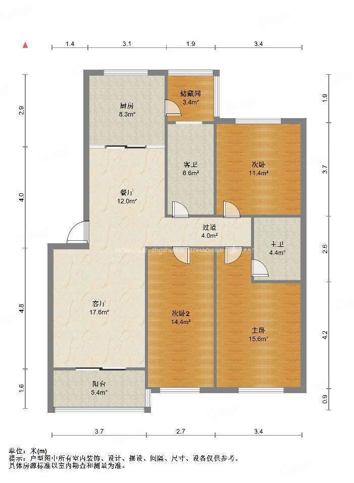 厅室3室2厅1卫1阳台