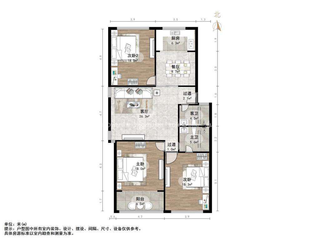 厅室3室2厅2卫1阳台
