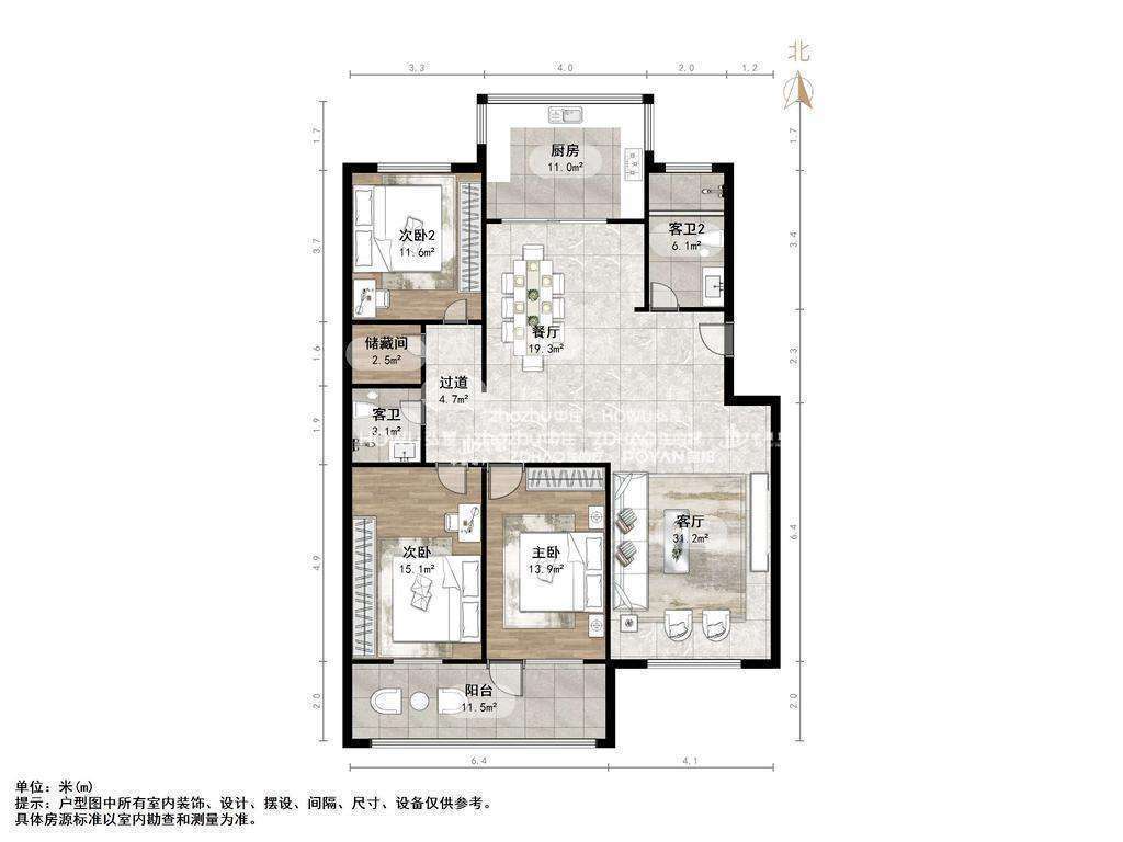 厅室3室2厅2卫1阳台