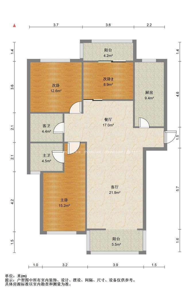厅室3室2厅2卫2阳台