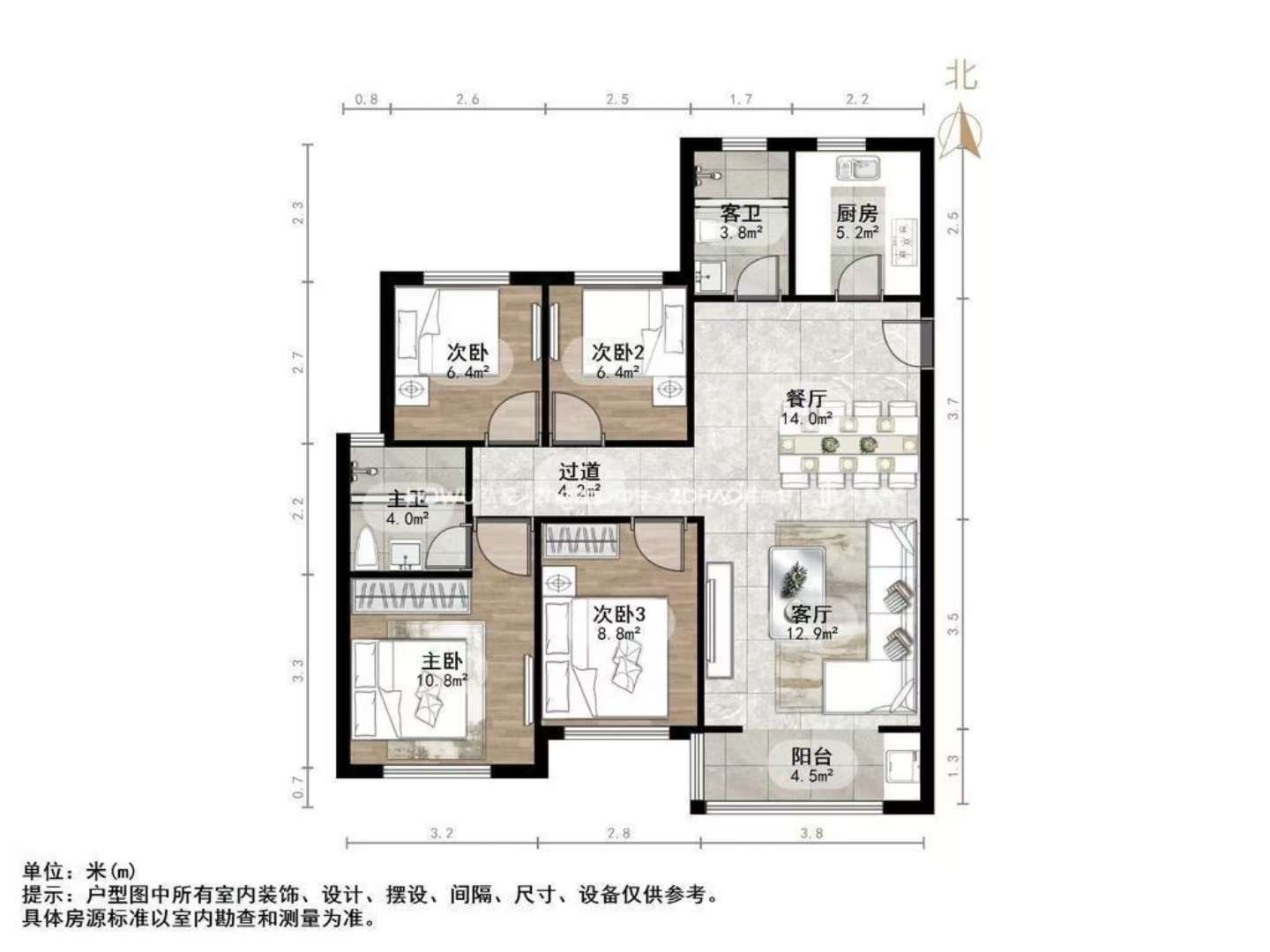 厅室3室2厅2卫0阳台