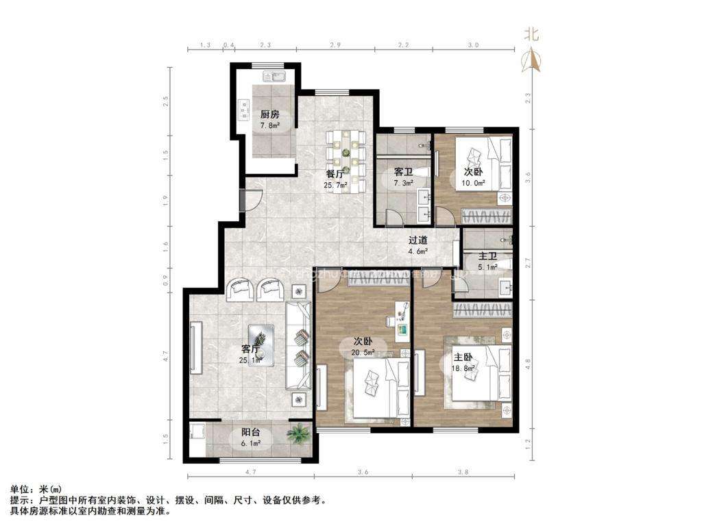 厅室3室2厅2卫1阳台