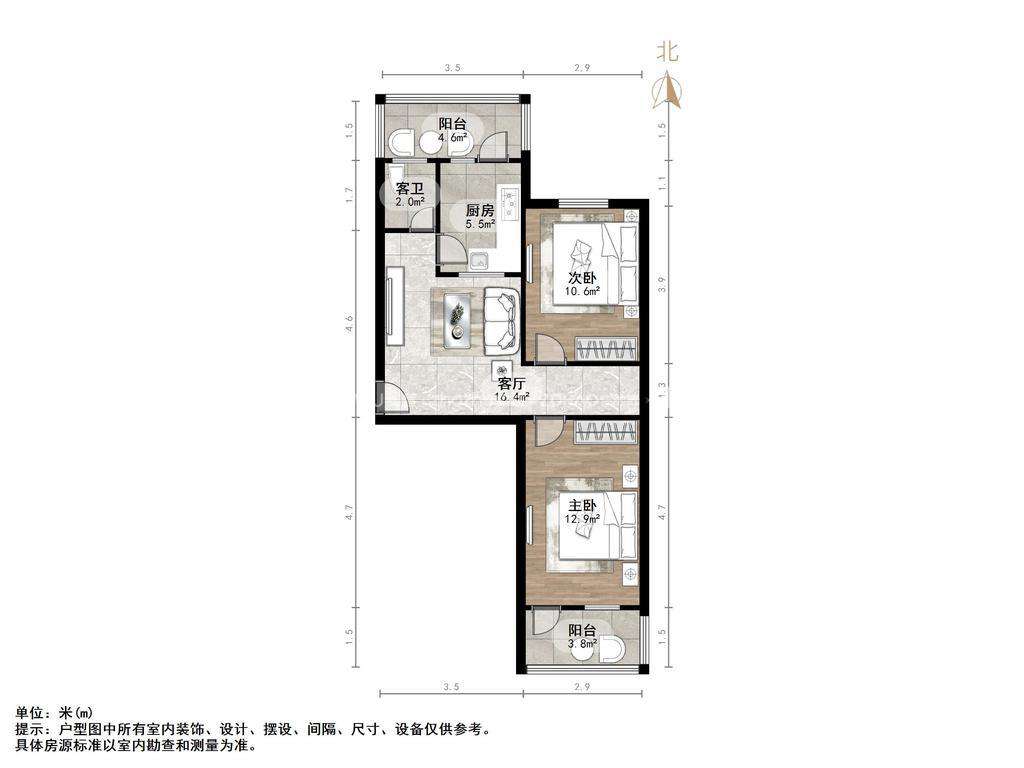 朝向南北 建筑面积70㎡