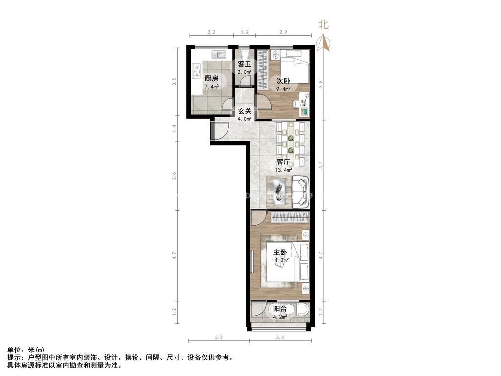 朝向南北 建筑面积65㎡