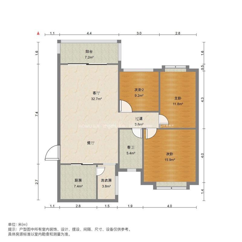 厅室3室2厅1卫0阳台