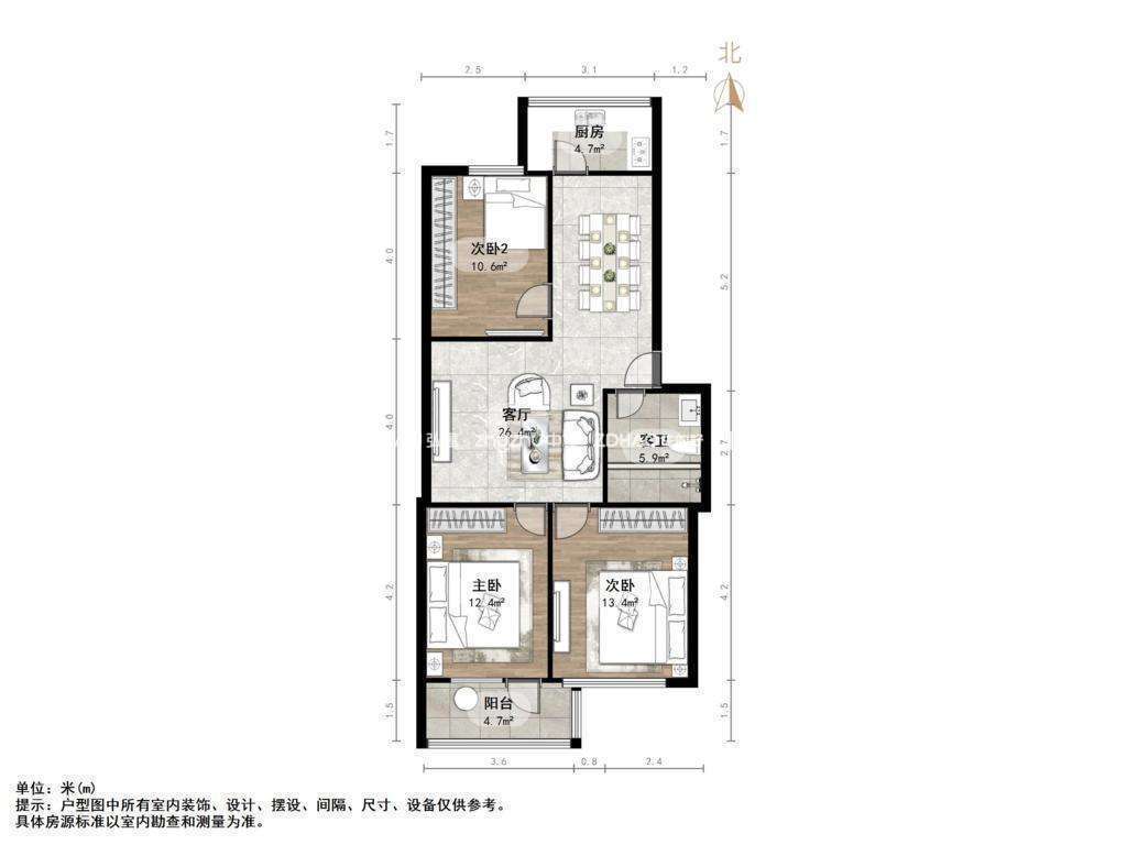 厅室3室2厅1卫1阳台