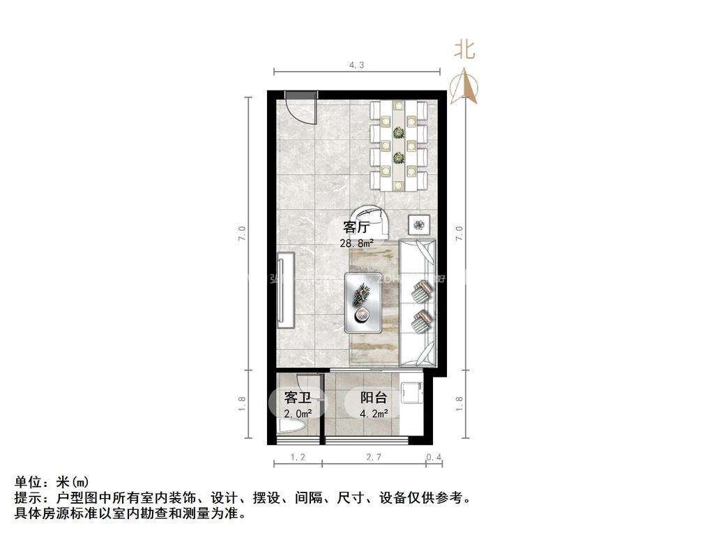 厅室1室1厅1卫0阳台