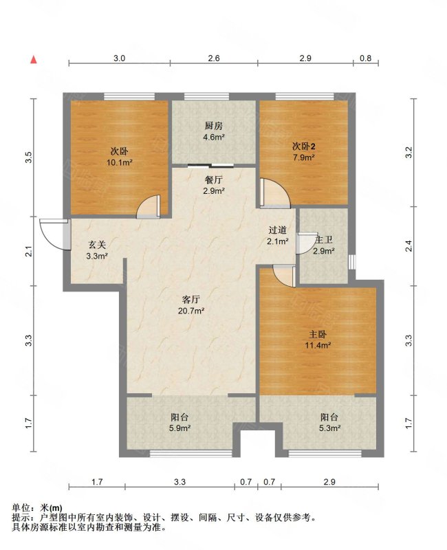 厅室3室2厅1卫1阳台