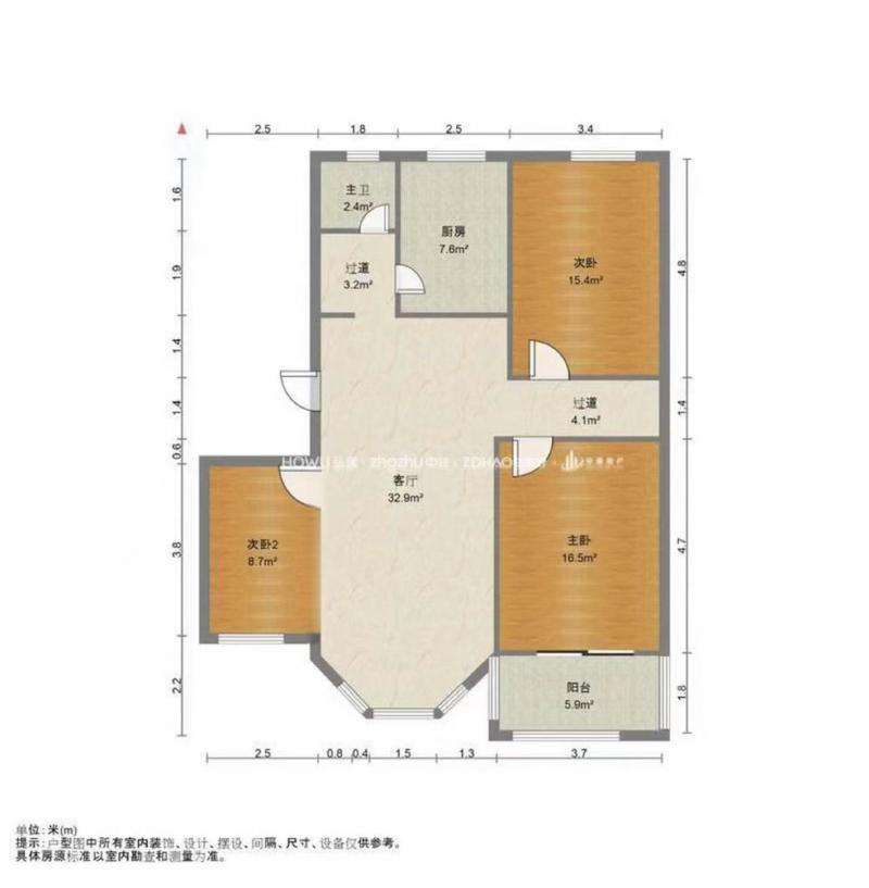 厅室3室2厅1卫1阳台