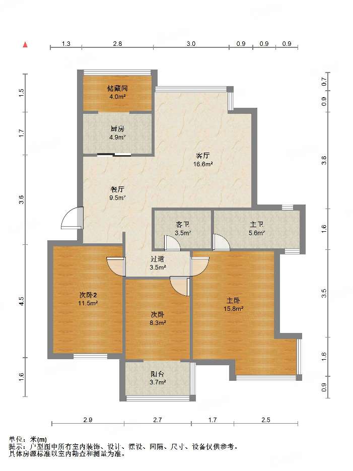 厅室3室2厅2卫1阳台