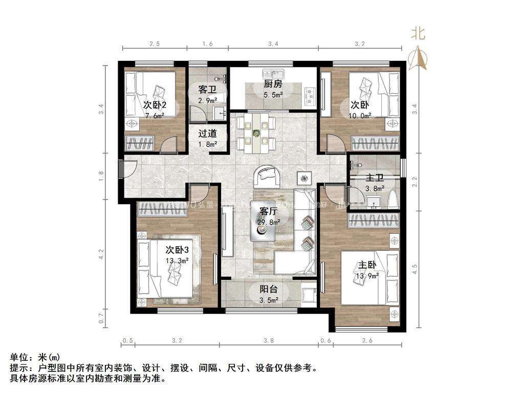 朝向南北 建筑面积131.1㎡