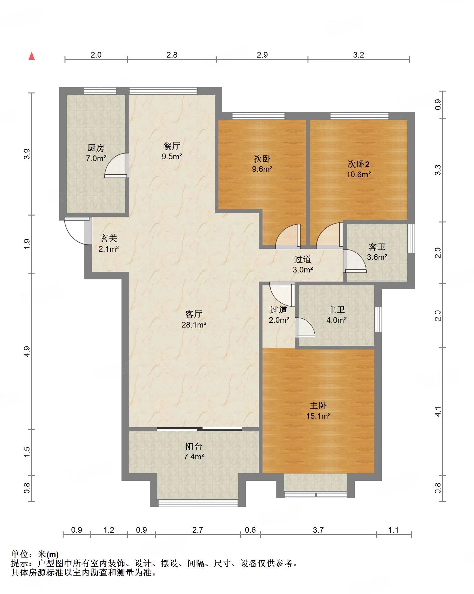 厅室3室2厅2卫2阳台