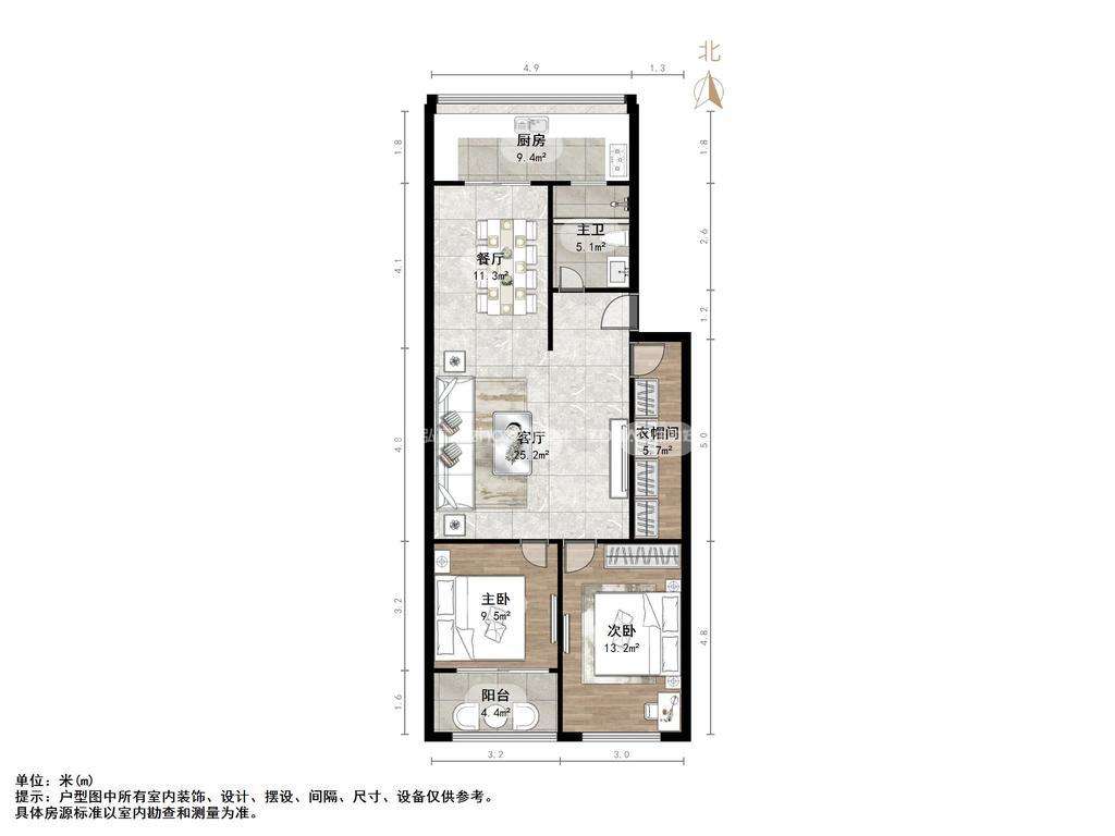 朝向南北 建筑面积120㎡