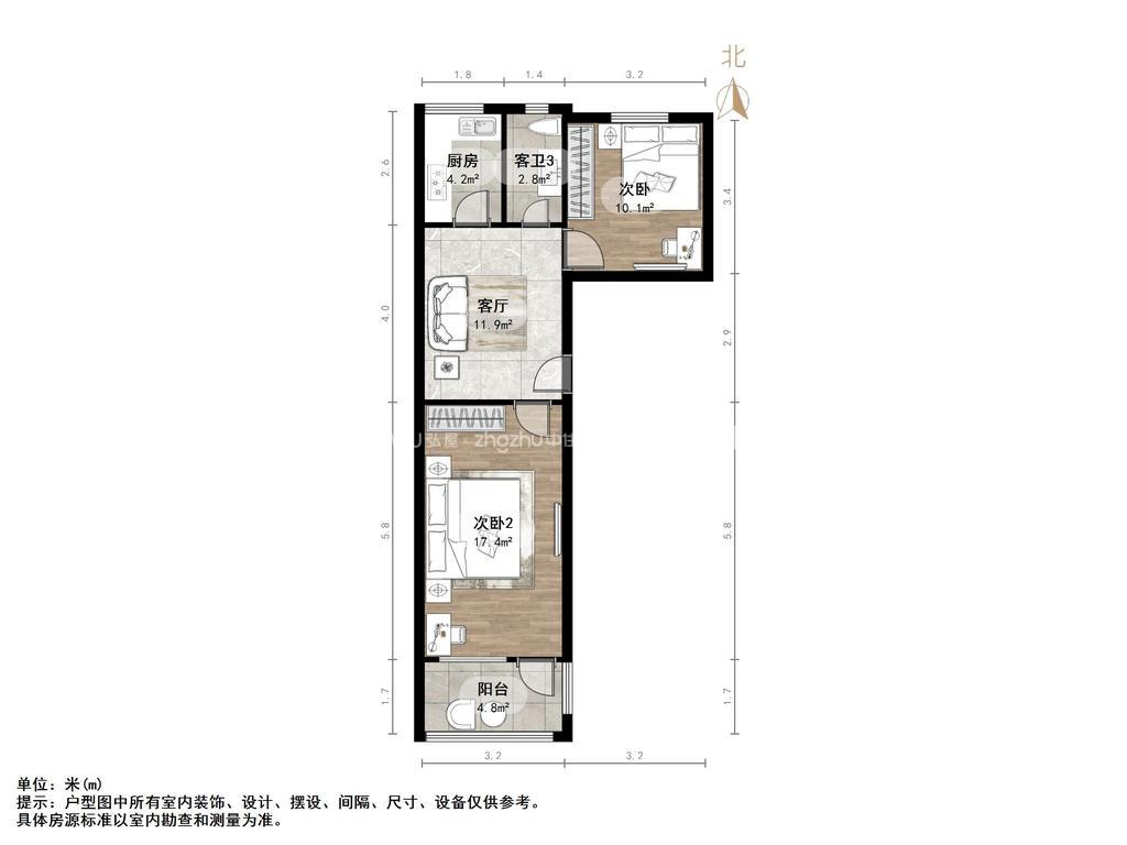 朝向南北 建筑面积61㎡