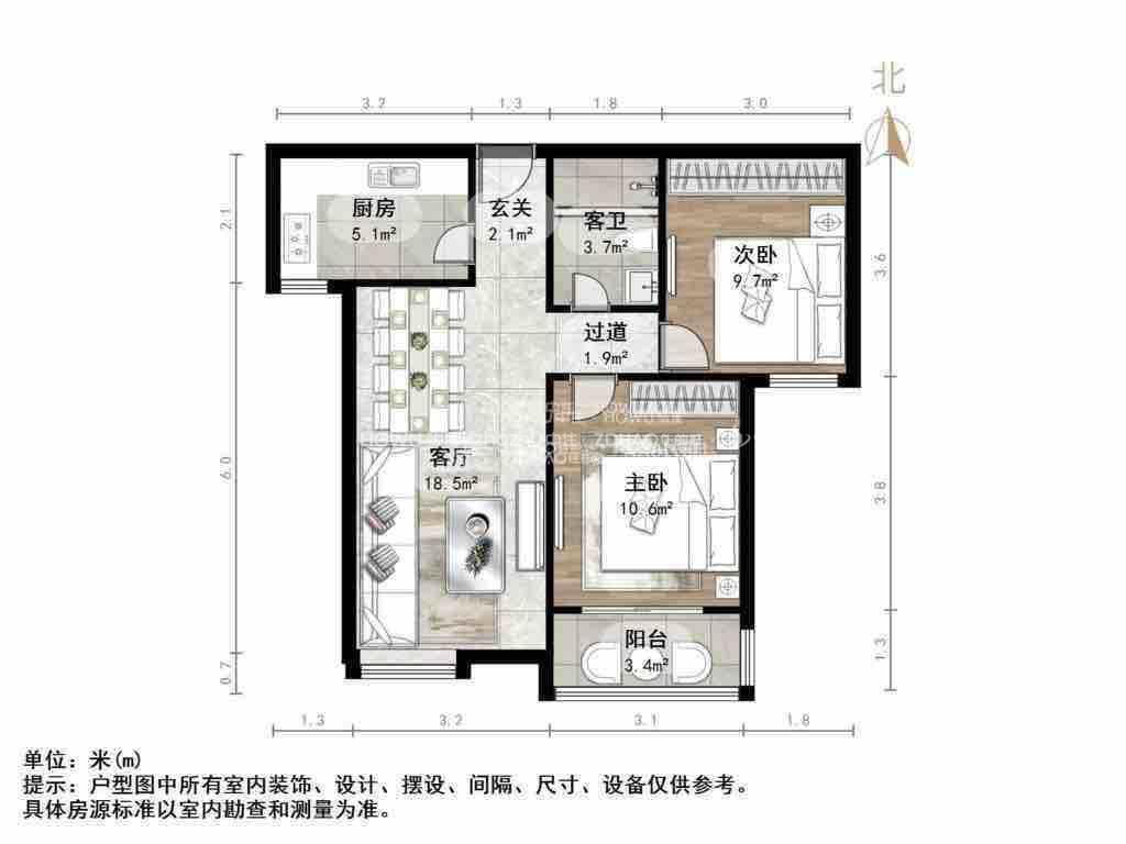 厅室2室2厅1卫1阳台