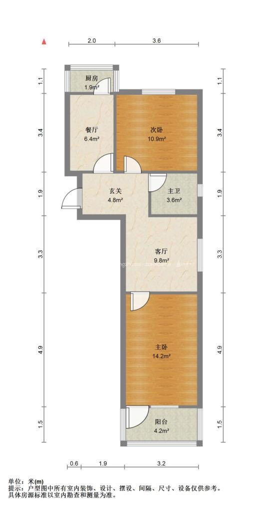 厅室2室1厅1卫1阳台