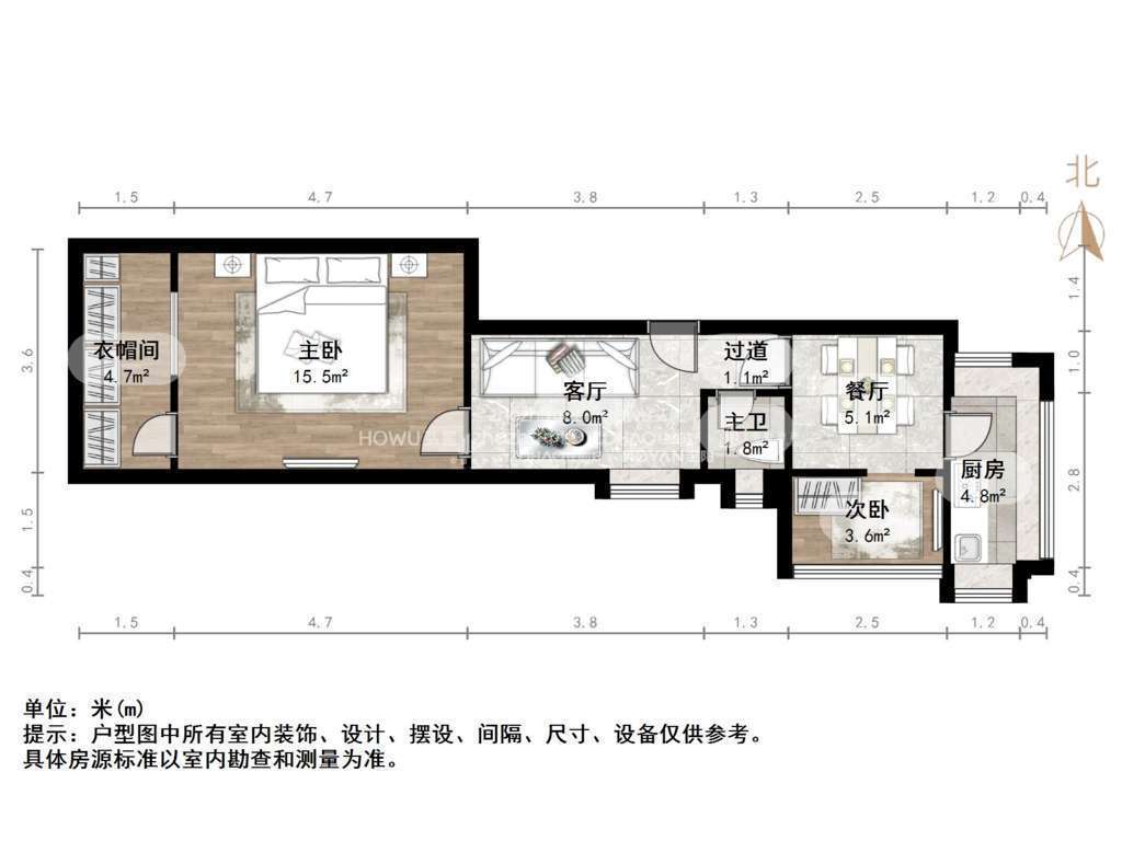 朝向西北 建筑面积48㎡