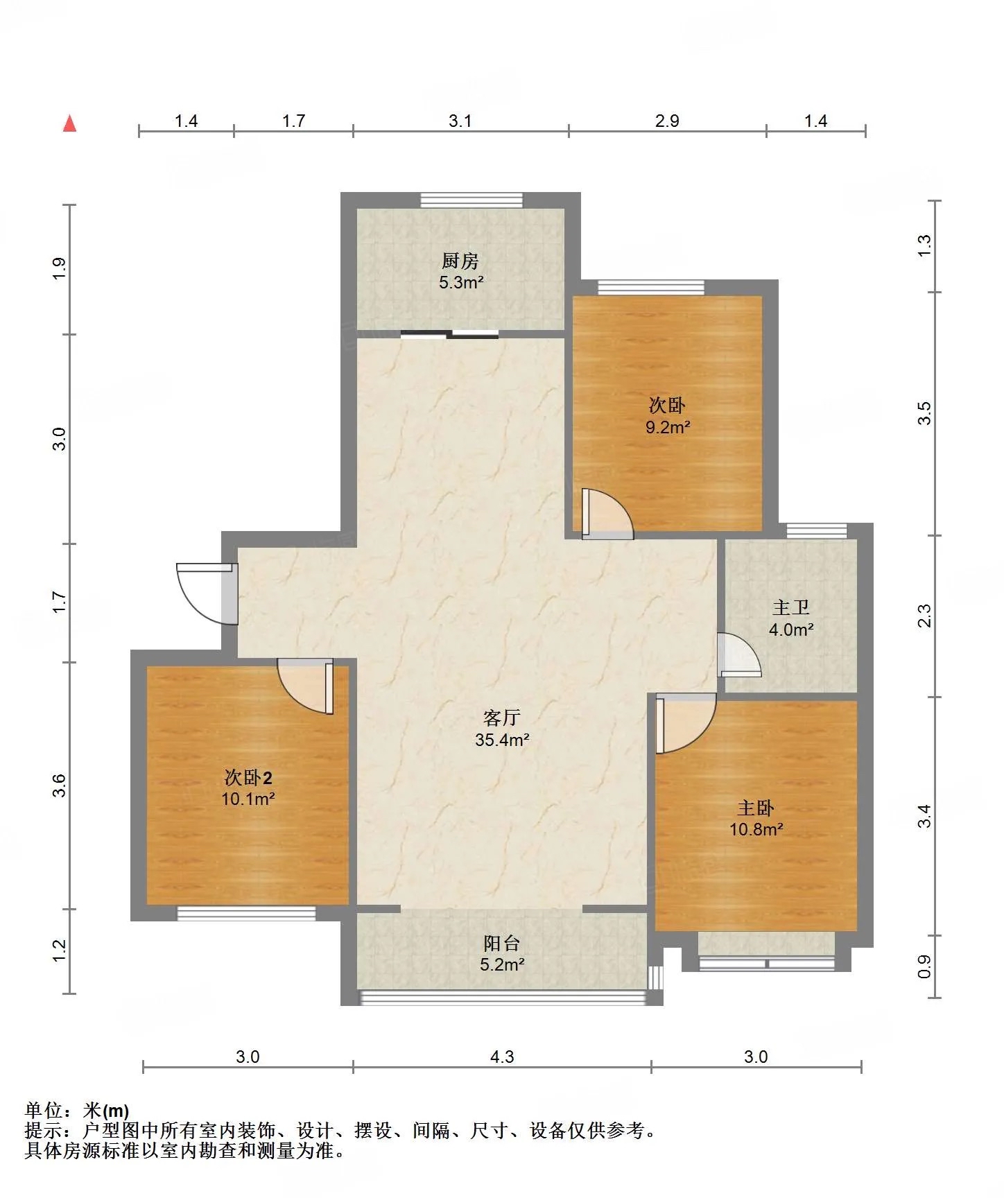 厅室3室2厅1卫1阳台