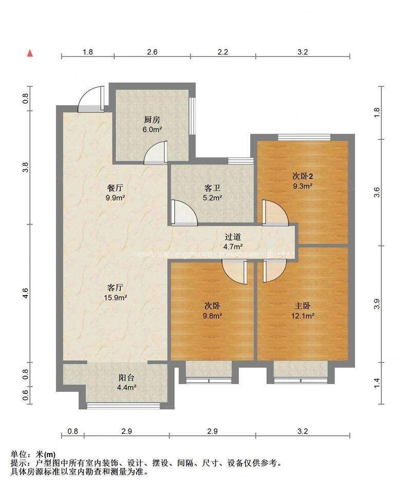 厅室3室2厅1卫1阳台